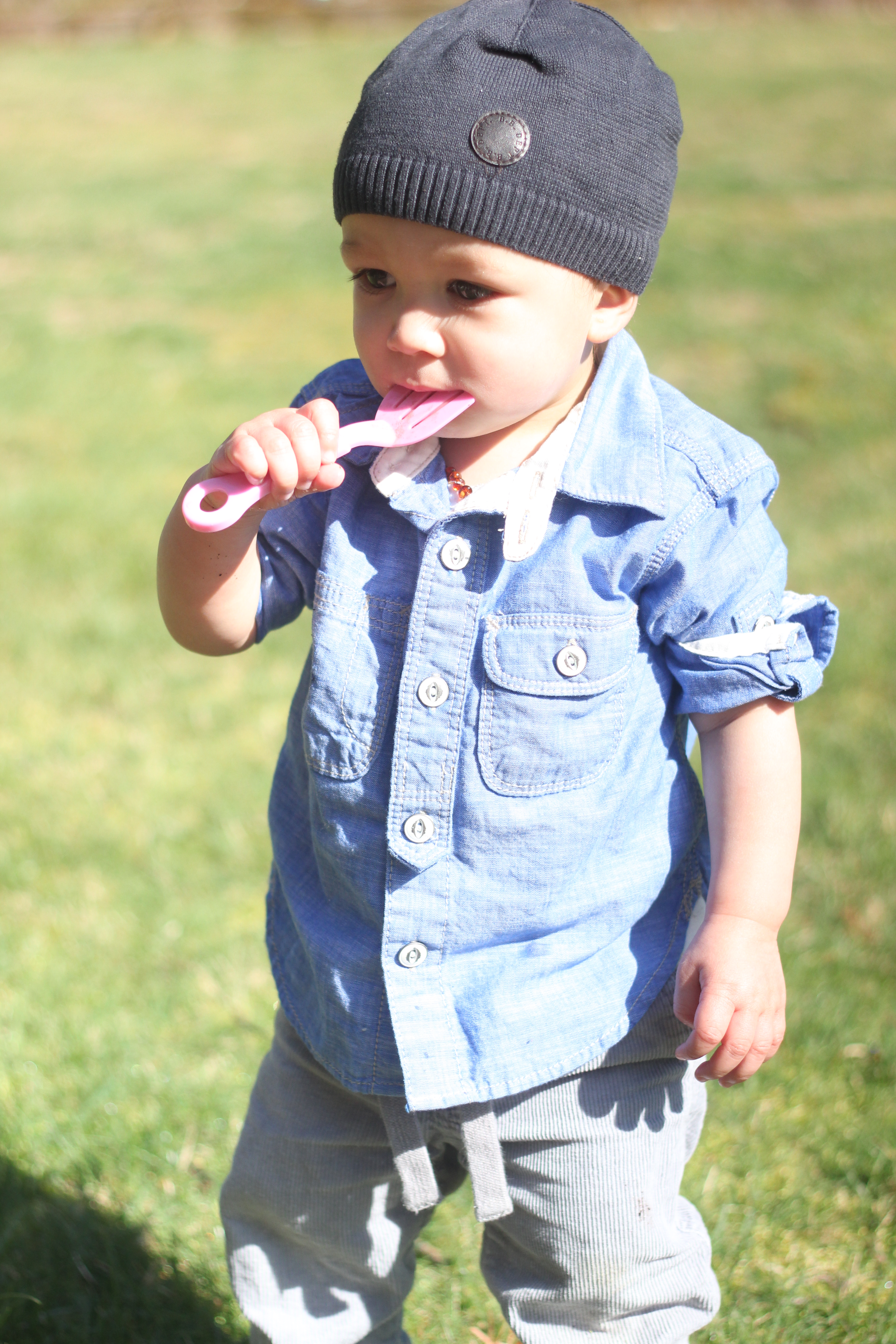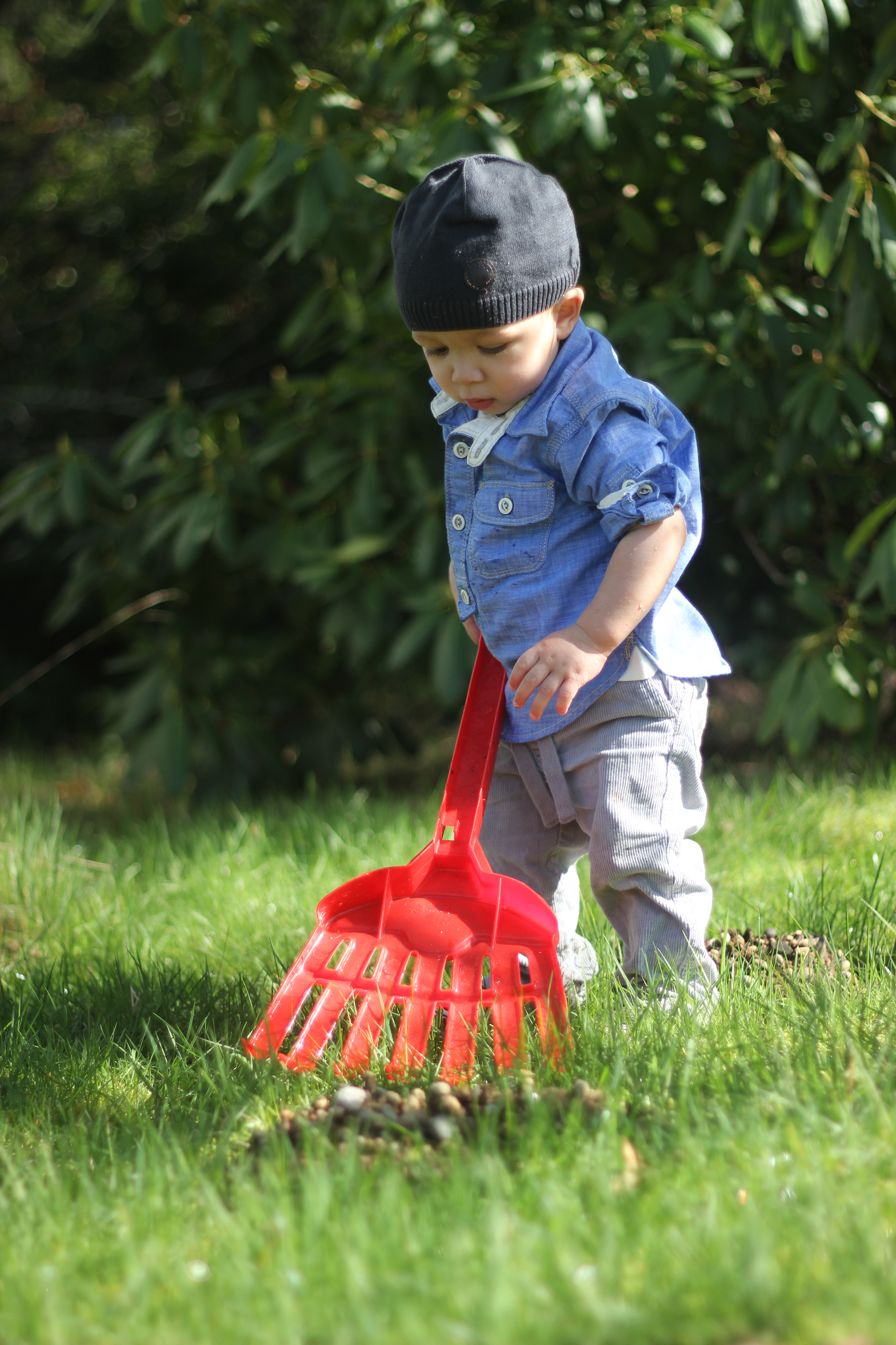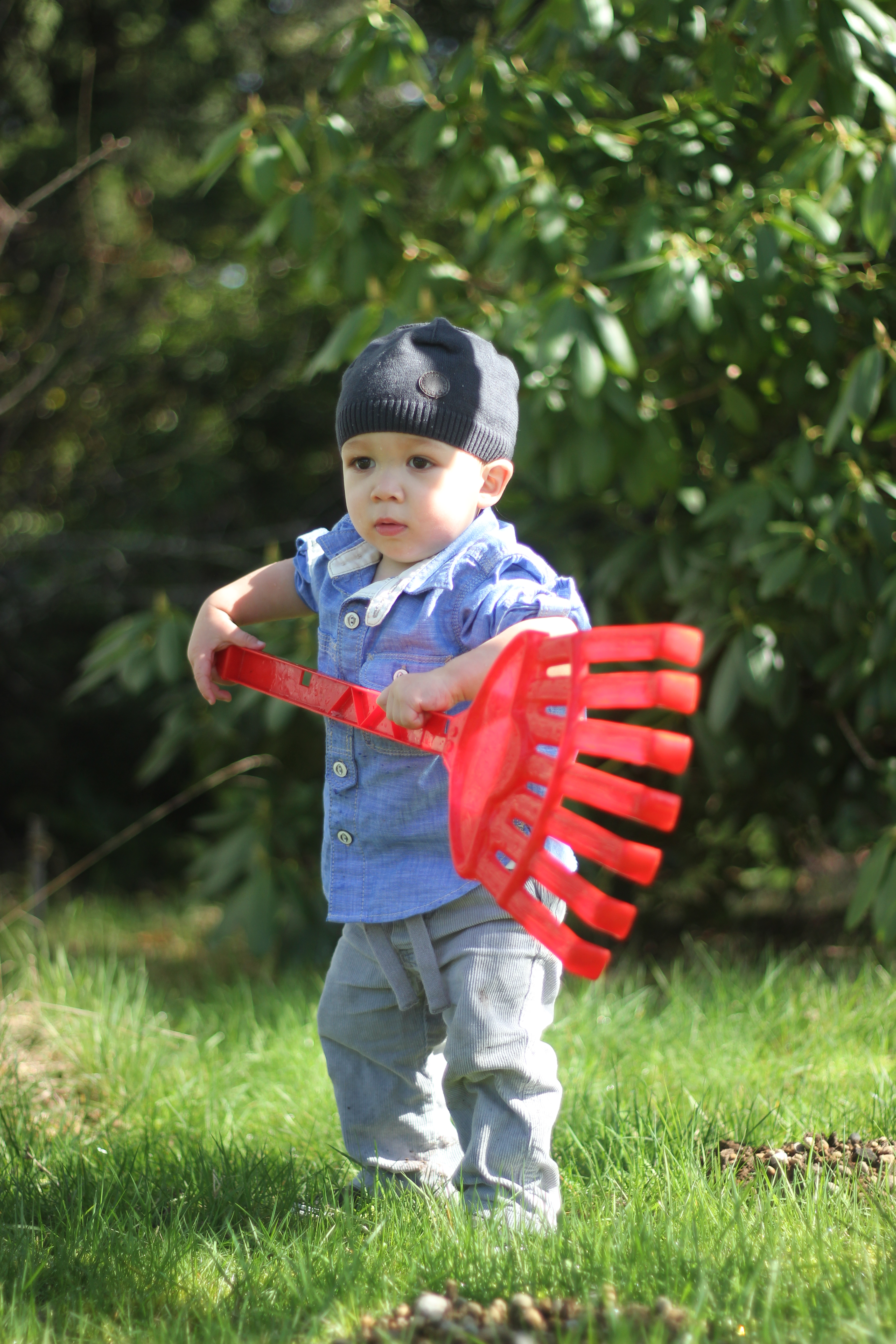 Since the day got SO nice, after lunch I decided we could get some energy out outside…heres a few pictures…Madelyn’s “thing” lately has been dressing herself and you could DEFINITELY tell today hehe…and you can see her haircut that she gave herself a couple weeks ago is STILL coming in terribly. These pictures really show off her mullet, but I love the enthusiasm I see out of her when she tells someone she cut it :o) Alex got to experience the little tykes slide we bought 2 winters ago off Kitsap Buy/Sell/Trade today…and he discovered Madelyn’s gardening rake while outside too…